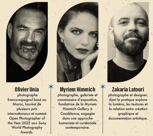 Le jury artistique réunit un photographe franco-espagnol basé au Maroc, lauréat de plusieurs prix internationaux et nommé Open Photographer of the Year 2025 aux Sony World Photography Awards, Myriem Himmich, photographe, galeriste et fondatrice de la Myriem Himmich Gallery à Casablanca, ainsi qu’un photographe et designer dont le travail explore la lumière, les textures et la création graphique. Le jury est complété par des représentants de l’Ambassade d’Allemagne au Maroc, associés à l’évaluation des projets.
