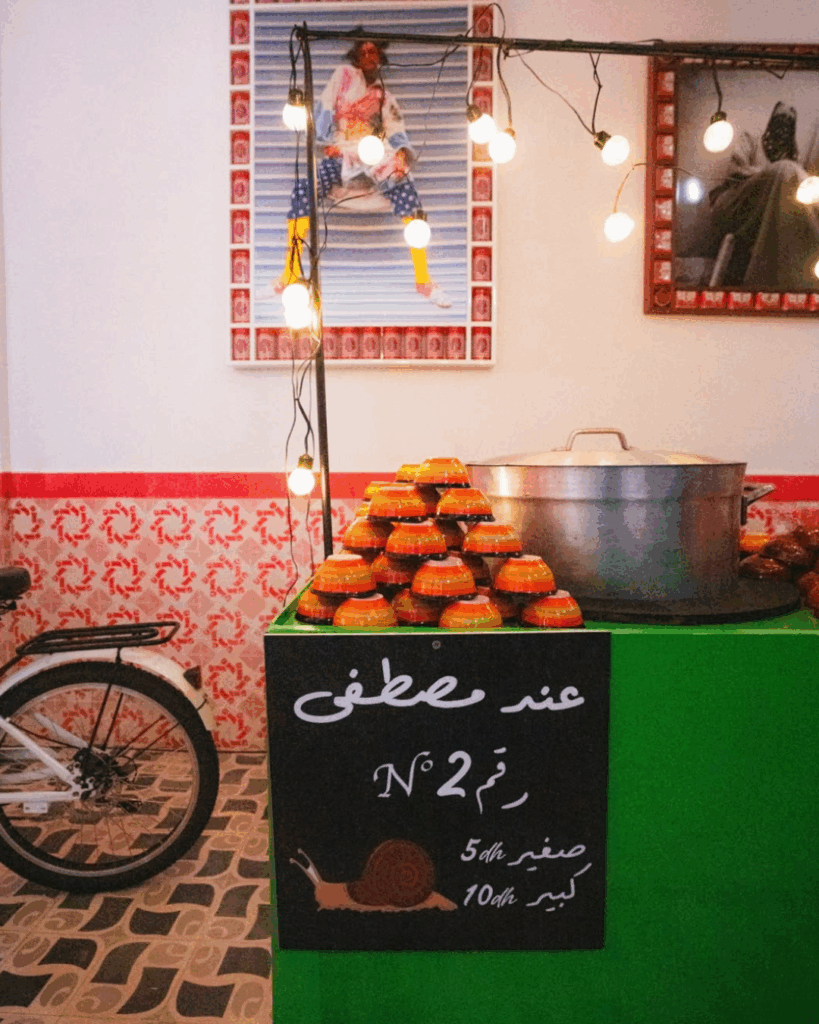 Côté assiettes et gestes, JUJ rend hommage aux métiers de la street food marocaine : vendeurs d’escargots, d’eau, de jabane… Une culture populaire mise à l’honneur sans folklore, dans un esprit de partage et de proximité.