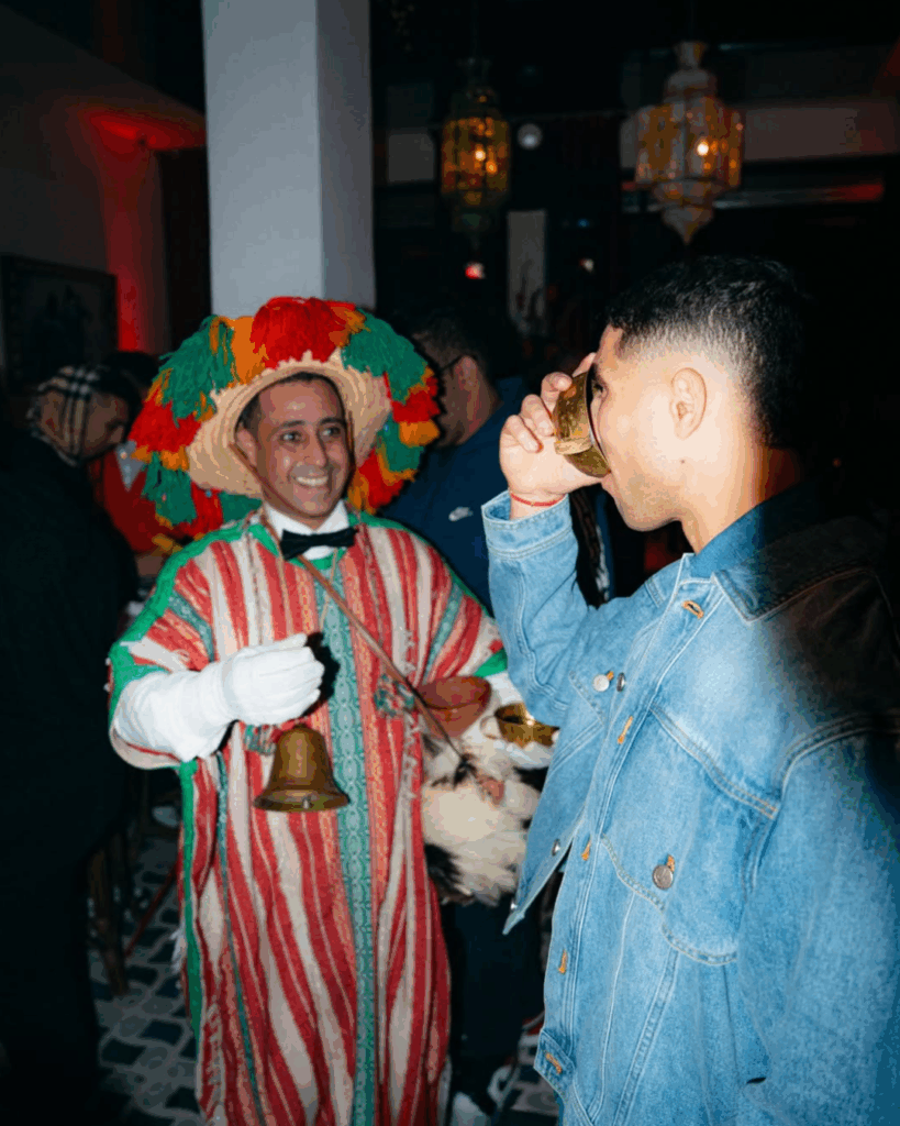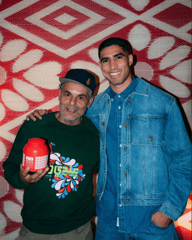 Le projet prend une dimension supplémentaire à l’occasion de la Coupe d’Afrique des Nations, organisée au Maroc du 21 décembre 2025 au 18 janvier 2026. Pour cet événement, Achraf Hakimi s’associe à l’artiste Hassan Hajjaj, figure emblématique de la scène visuelle marocaine contemporaine. Ensemble, ils imaginent JUJ comme un café éphémère et hybride.