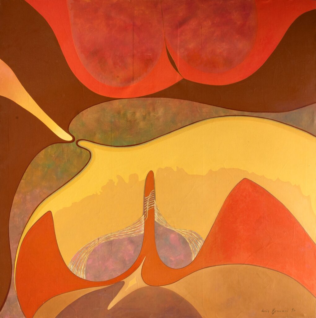 Figure majeure et véritable pionnier de la modernité marocaine aux côtés d’artistes tels que Mohamed Melehi et Farid Belkahia, Karim Bennani (1936–2023) occupe une place centrale dans l’histoire des arts plastiques au Maroc. Dès les premières décennies de l’Indépendance, il contribue à définir les contours d’un langage plastique résolument contemporain, tout en participant activement à la structuration des institutions artistiques du pays. Co-fondateur de l’Association Marocaine des Arts Plastiques (AMAP), il fait partie de cette génération fondatrice qui a posé les bases d’une scène artistique professionnelle ouverte et porteuse d’une vision ambitieuse pour la création nationale.