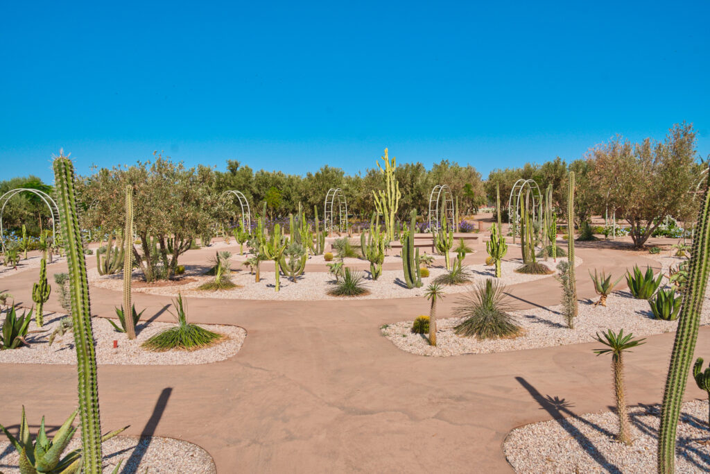 Plus loin, la roseraie déploie ses 2 300 rosiers aux parfums capiteux sur 577 mètres carrés, offrant une collection riche de variétés de roses. « Nous voulions montrer que le Maroc a toujours été un carrefour », explique Patrice LEGRIS, directeur général du ROYAL PALM MARRAKECH. « Le jardin reflète cette ouverture au monde. »