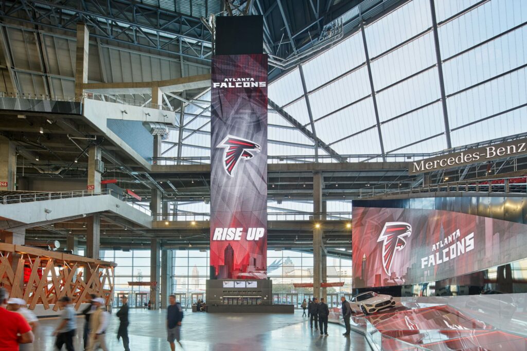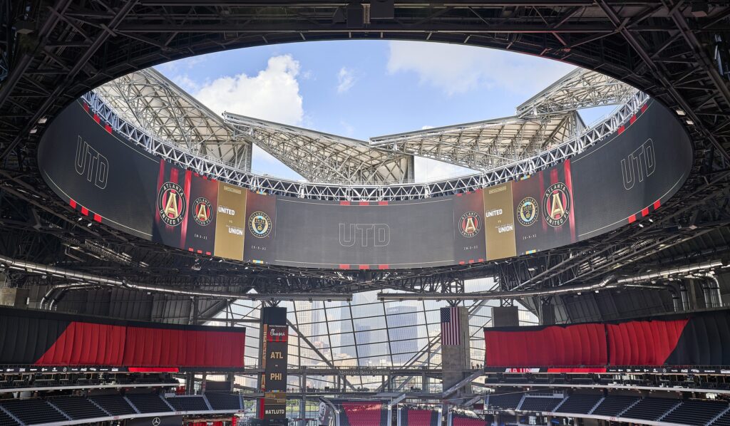 Implanté au centre de la ville, le Mercedes-Benz Stadium s’impose comme un symbole du renouveau d’Atlanta.