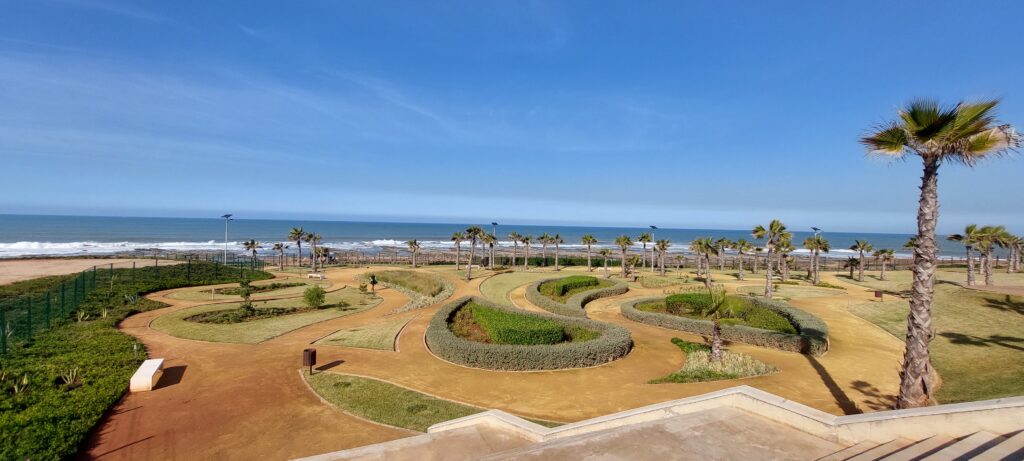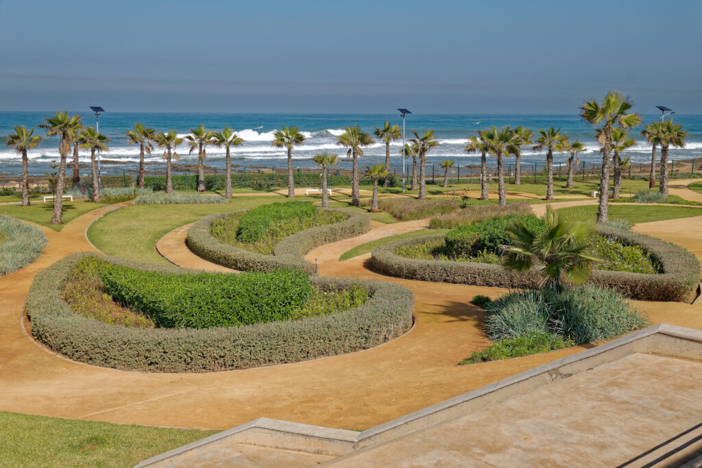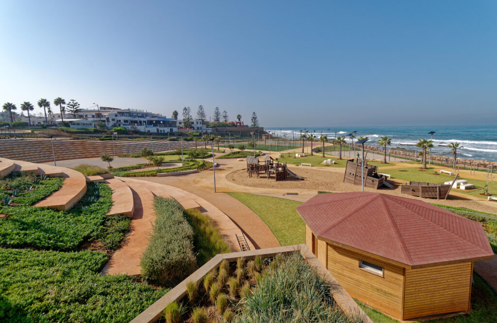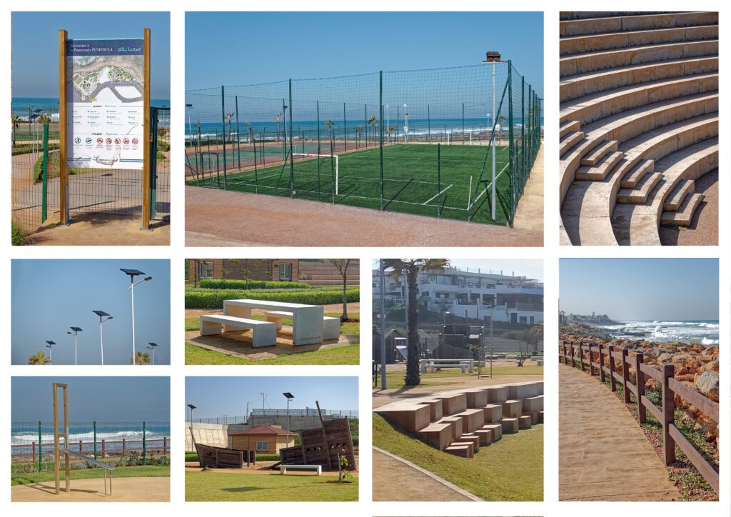 Ce projet signature, ancré dans le littoral et à vocation publique, est conçu par l’architecte-paysagiste Carey Duncan. Il articule une promenade maritime, des espaces de loisirs et des infrastructures sportives en dialogue avec un ensemble résidentiel en cours de réalisation. Implanté sur une péninsule aux abords de Casablanca, il déploie une mise en scène paysagère offrant une perspective panoramique à 270° sur l’océan.