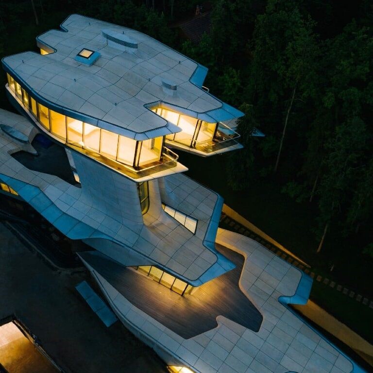 Cette image de la Capital Hill Residence représente bien mes propos. Cette unique villa privée réalisée par Zaha Hadid, située en banlieue de Moscou, et bâtie en 2006, incarne pleinement la vision futuriste et organique de l’architecture que j’admire.