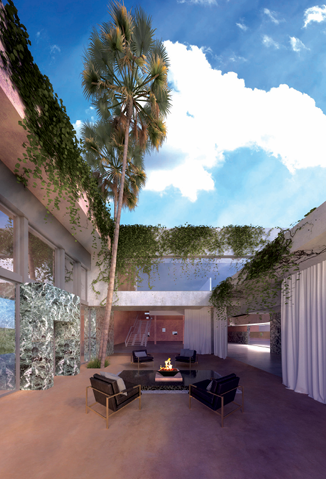 Par exemple, la réception de cet hôtel se trouve dans un patio, qui lui, laisse entrouvert la galerie d’art se situant derrière. La conception de cette réception a été basique, mais en respectant l’ambiance locale.