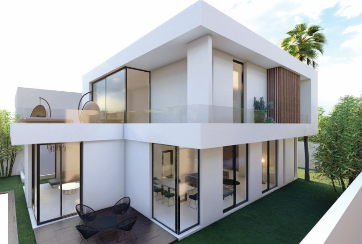 Son principal atout se situe au niveau des façades principales disposant d’une grande ouverture ayant vue sur le jardin. Au sein de cette villa règne un sentiment de liberté en raison de l’ouverture de toutes les pièces principales comme les salons. La conception de cette maison a été réalisée avec une intention principale de rester dans le blanc afin de créer un contraste avec la nature végétale du jardin. Ainsi, il apparaît seulement deux couleurs à fort contraste, le blanc et le vert, afin de faire ressortir l’architecture de ce joyau blanc au sein d’un jardin verdoyant.