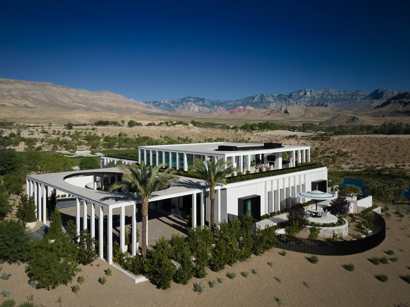 Niché dans le désert du Nevada, la villa Tombolo est conçue comme un pont entre le géométrique et l’organique, l’ancré et l’éthéré. Imaginé par le célèbre cabinet d’architecture et d’intérieur Daniel Joseph Chenin, son nom vient du relief rare qui relie une île au continent, métaphore de la connexion et de l’unité qui guide chaque décision.