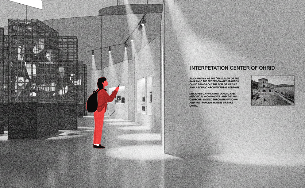 - L’aube du parcours : depuis Gorna Porta, une plateforme révèle la topographie et les vues. Le Centre d’Interprétation mêle ruines et structures transparentes pour accueillir expositions et services d’accueil.